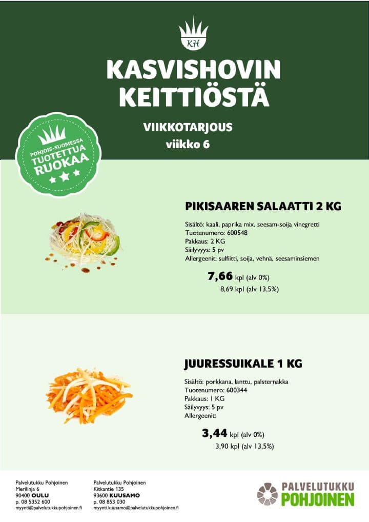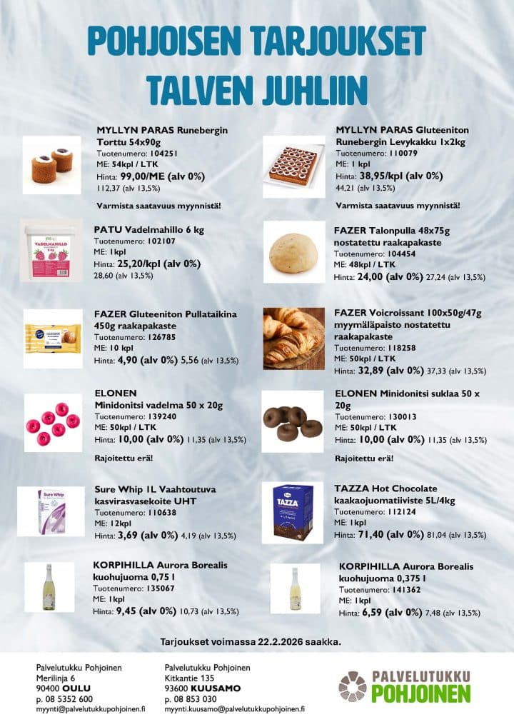 Myynti, p. (08) 5352 600 tai myynti@palvelutukkupohjoinen.fi