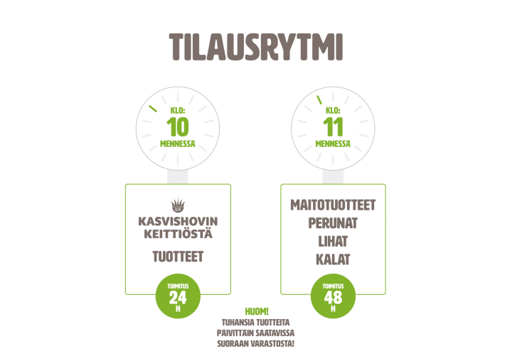 Huomaathan, että verkkokaupan tilaus-toimitusrytmi on pääsääntöisesti 48 h.